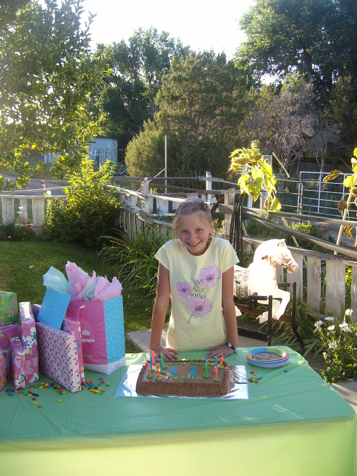 This year for Kaydens Birthday she wanted to go to Eagar and have it with family over there. So that's what we did. We had fun with both sets of Grandparents, and Josh and Amber and Blake and Martha. We had a yummy BBQ at Grandmas, and thanks to Grandma she always makes cute yummy cakes:) Kayden just requested Brown with green and blue, so this is what she came up with:) Thanks Grandma